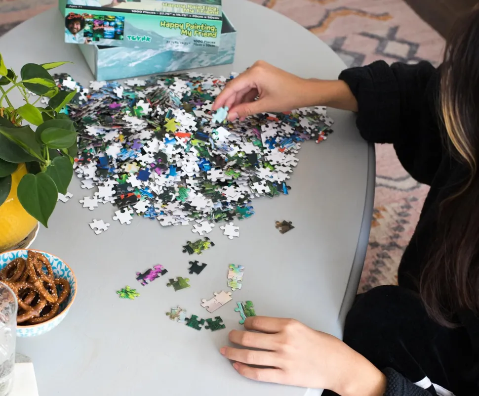 Test your patience and problem-solving skills with this fun challenge, and always remember that there are no mistakes, only happy accidents as you piece together the image. Exercise your imagination as you assemble this 1000-piece puzzle, which makes for a fun and crafty display piece once finished. Host a family game night or make it a personal challenge to complete this Bob Ross puzzle solo.