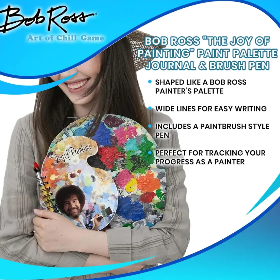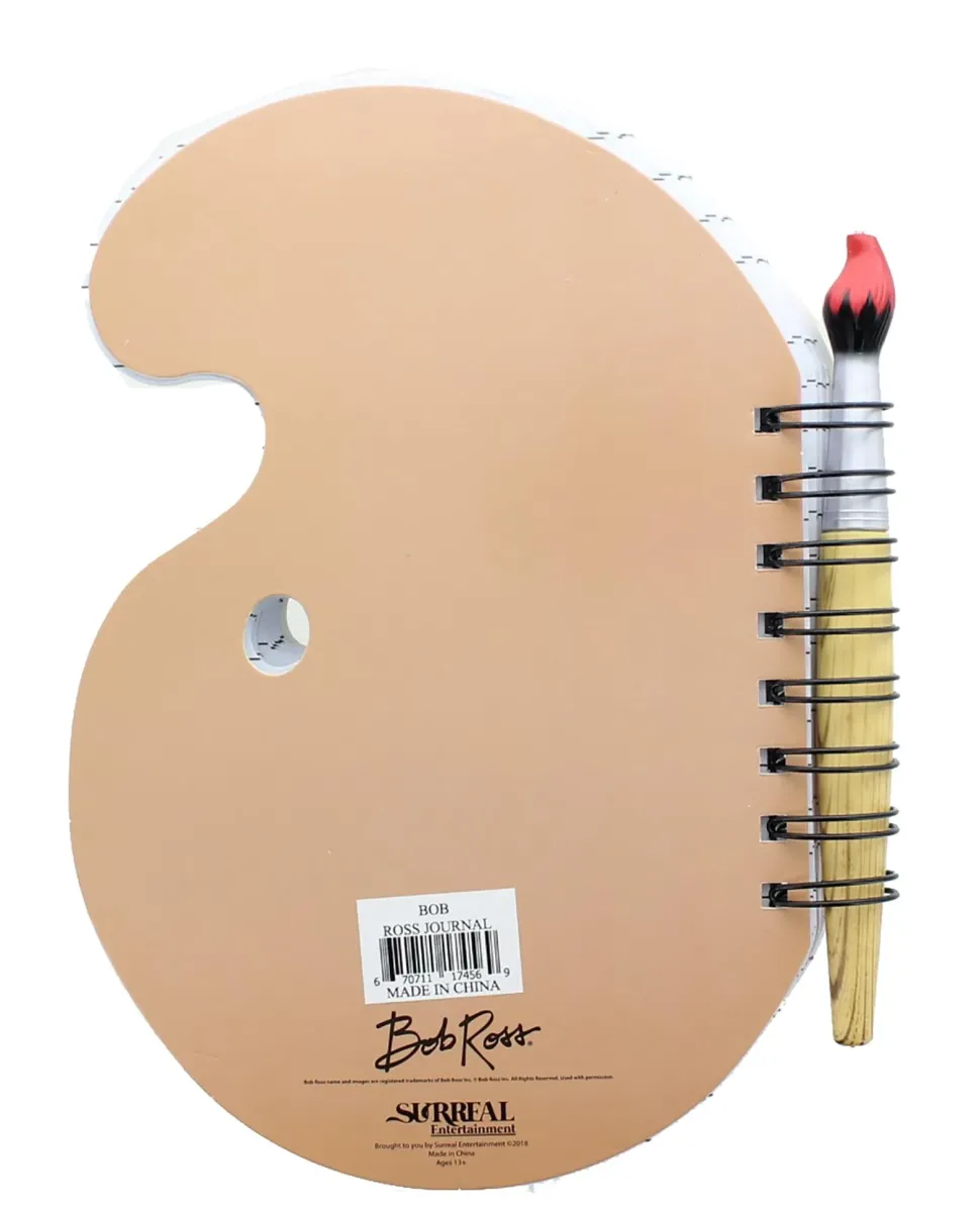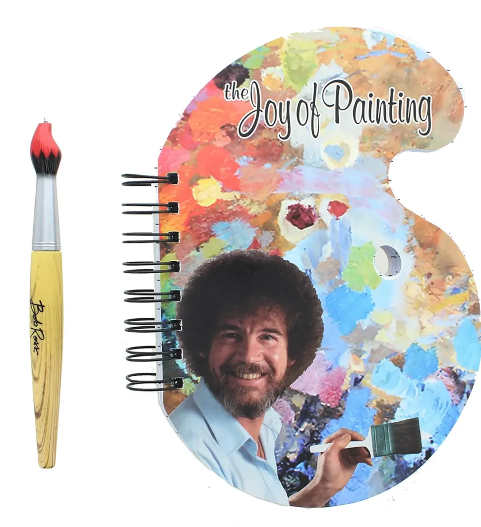 Own a collectible inspired by one of the happiest television personalities in pop culture history, the legendary painter Bob Ross! Featuring the host of the hit 80s TV show, our Bob Ross Journal and Pen set includes a spiral notebook in the shape of a paint palette, as well as a ink pen shaped like a paint brush! An officially licensed Bob Ross product by Surreal Entertainment.