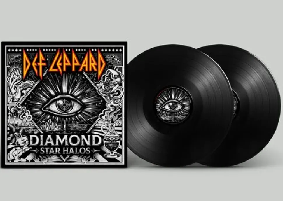 Double vinyl LP pressing. Diamond Star Halos is the 2022 album from Def Leppard since their chart topping self-titled record in 2015. It features 15 tracks including the anthemic, stadium-ready singles “Kick” and “Fire It Up,” with guest vocals from Alison Krauss on “This Guitar” and “Lifeless. ” The album title references T. Rex’s “Bang a Gong (Get It On)” with nods to T. Rex, David Bowie, and Mott The Hoople across the album.