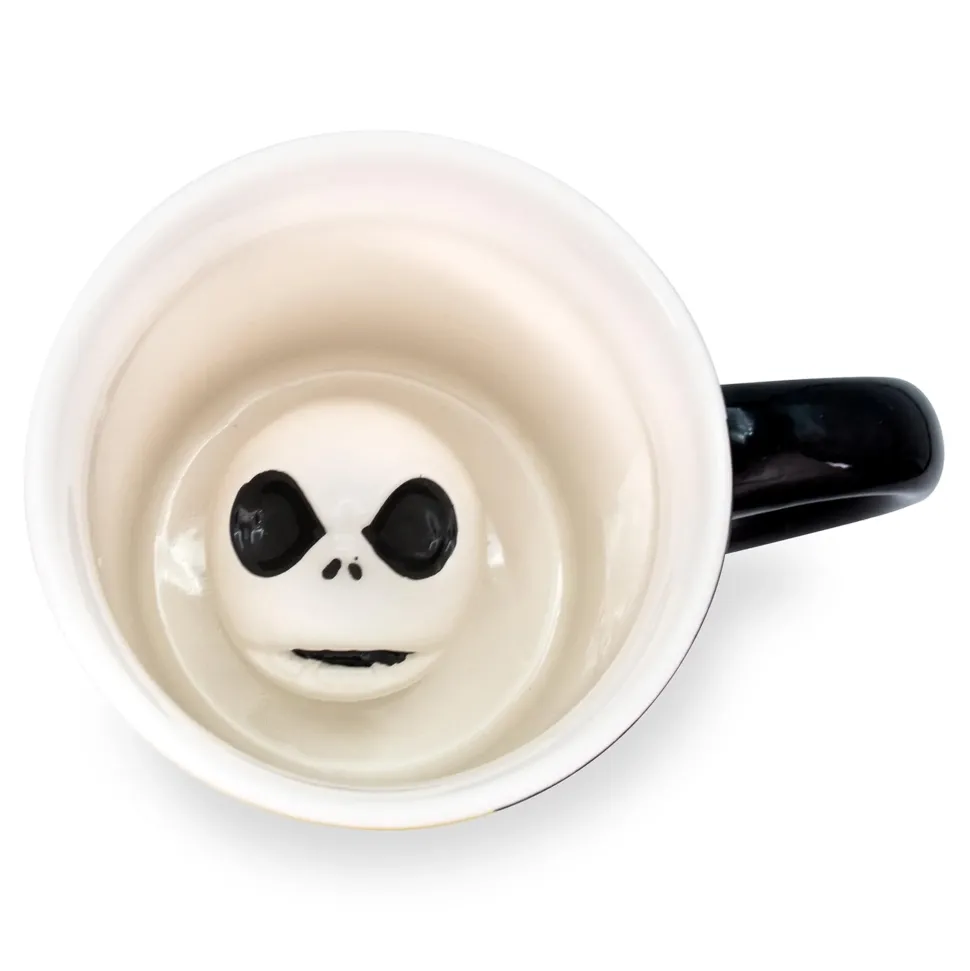 Recreates the classic Spiral Hill scene, so you can relive your favorite Disney movie moment again and again. The moonlit sky contrasts the black and white tones in this reimagining of Jack Skellington’s lament. Waiting to give you a frightful surprise, the one and only Pumpkin King’s familiar skeleton grin is artfully sculpted on the inside of the mug.