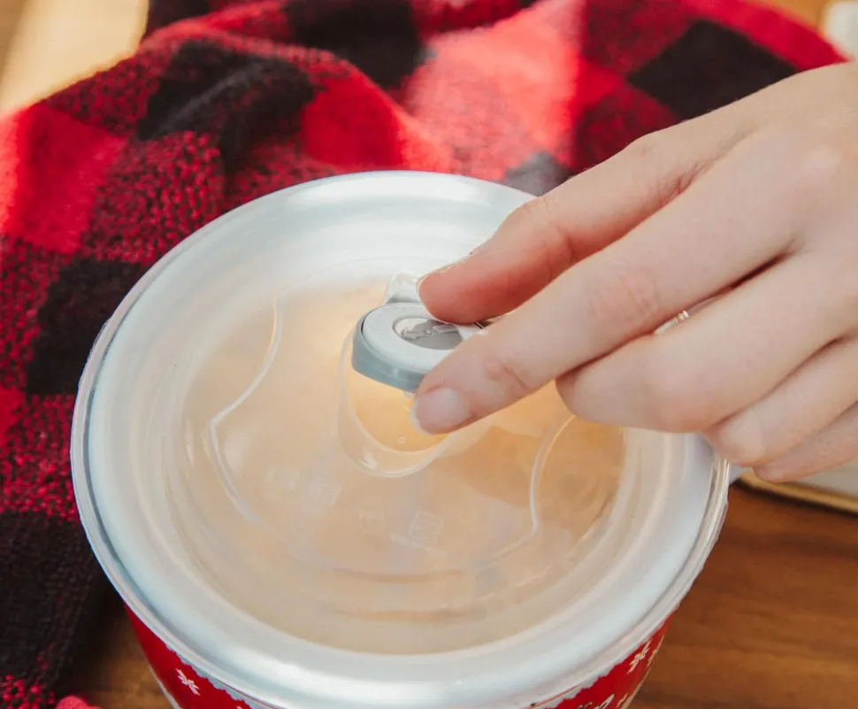 Perfect for use all year long, this festive white, green, and red soup mug is a smart way to make your next snacktime a special one.
