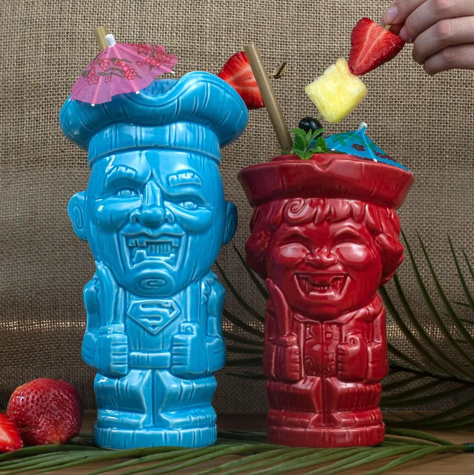 Inspired by the popular ’80s movie classic, this creative drinkware combines two of our favorite Goonies, Chunk and Sloth, with our unique tiki-styling. Excuse us, we meant Captain Chunk! Expertly crafted with high-end sculpted detailing, the colorful designs will add a pop of color and nostalgia to your home bar.