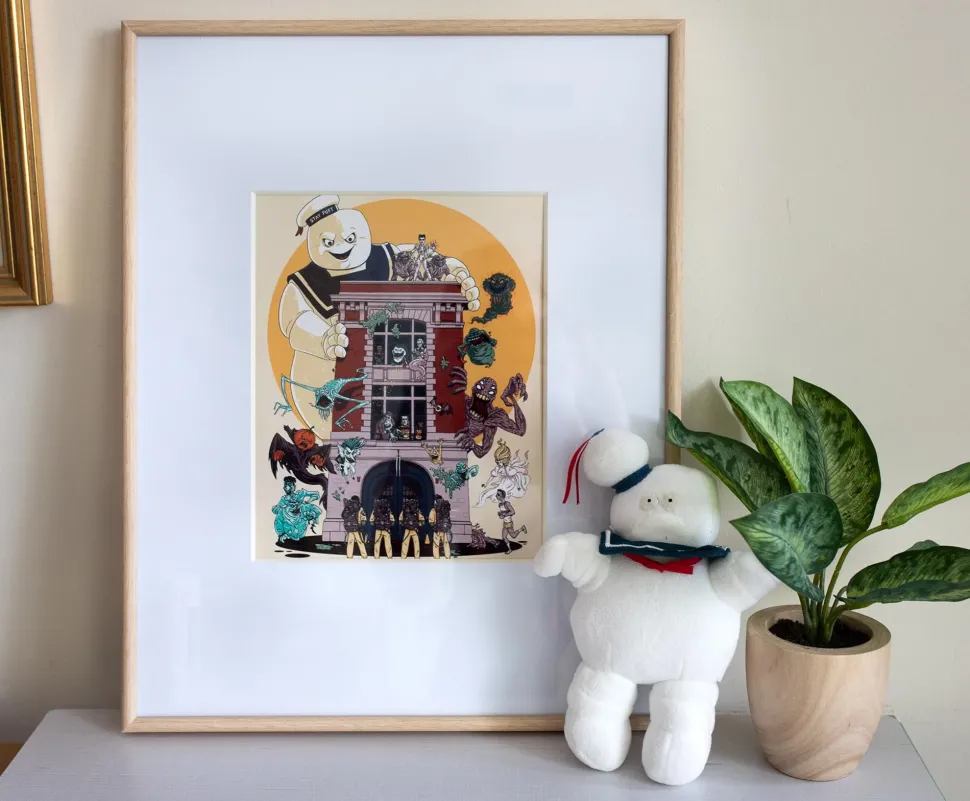 Have you said who you gonna call? This art print designed by Fredrik Eden features the four heroic Ghostbusters facing off a horse of ghosts and ghouls. Ideal for home or office, this print measures 8×10 inches. Makes a great gift for the Ghostbusters fan in your life or gift it to yourself!