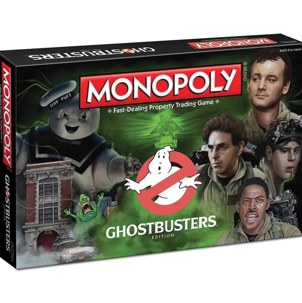 There’s something strange in your neighborhood! Save the world from paranormal activity by subduing the vapors, entities and slimers at famous New York locations from the original Ghostbusters movie. Improve your locations with custom sculpted Ghost Traps and Storage Units to hold the spooks at bay. No job is too big, no fee is too big in this custom edition of MONOPOLY! For 2-6 Players. Includes 6 Collectible tokens: Ecto-1, Stay Puft, PKE Meter, Zuul, Slimer, Proton pack, Custom houses Ghost Traps and hotels Storage Facilities, Custom Designed Game Board featuring locations from the original movie, Custom Community Chest, I Ain’t Afraid of No Ghost & Chance, Who Ya Gonna Call Cards, Custom themed MONOPOLY money, and Instructions.