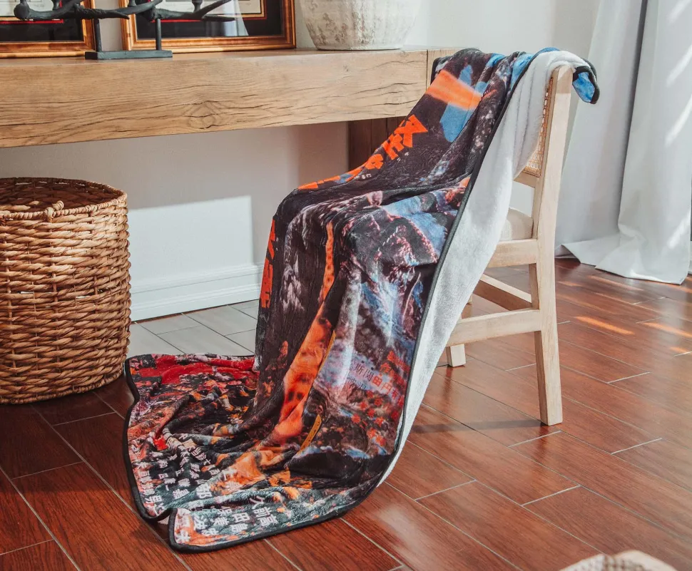 Let the soft embrace of this cozy throw blanket transport you to a world where kaiju roam and imagination knows no bounds. Crafted with care, the soft fleece design made of 100% polyester offers a cozy haven of comfort for titans. A must-have for fans who want to bring the excitement of Monster Island home.