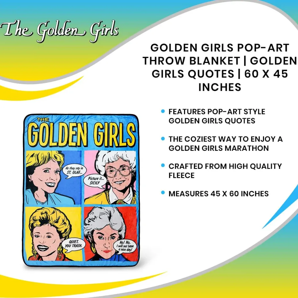 Let your environment speak for you when it comes to your personal likes and interests in entertainment by filling your home with the things you love! Fans of the Golden Girls series will absolutely go crazy for this large fleece throw blanket featuring a comic-art style gallery of all 4 girls! Officially licensed, this soft blanket is crafted from a quality fleece material and is designed to be a favorite addition to any Golden Girls fan’s collection! Grab this blanket for yourself or the Golden Girls fan in your life today!