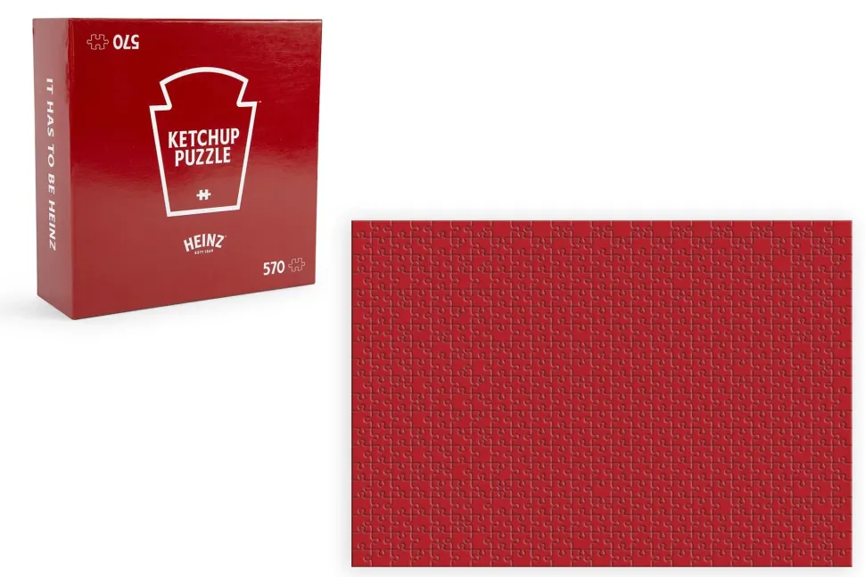 The eye-catching design is inspired by “the slowest ketchup in the west,” featuring an all-red pattern that matches the rich coloring of a juicy red tomato. The brilliant red design will give your space a pop of color, featuring vibrant styling that is sure to please any foodie. To top it off, the jigsaw pieces feature a beautiful glossy finish, giving the assembled puzzle a similar sheen to a Heinz Ketchup bottle.