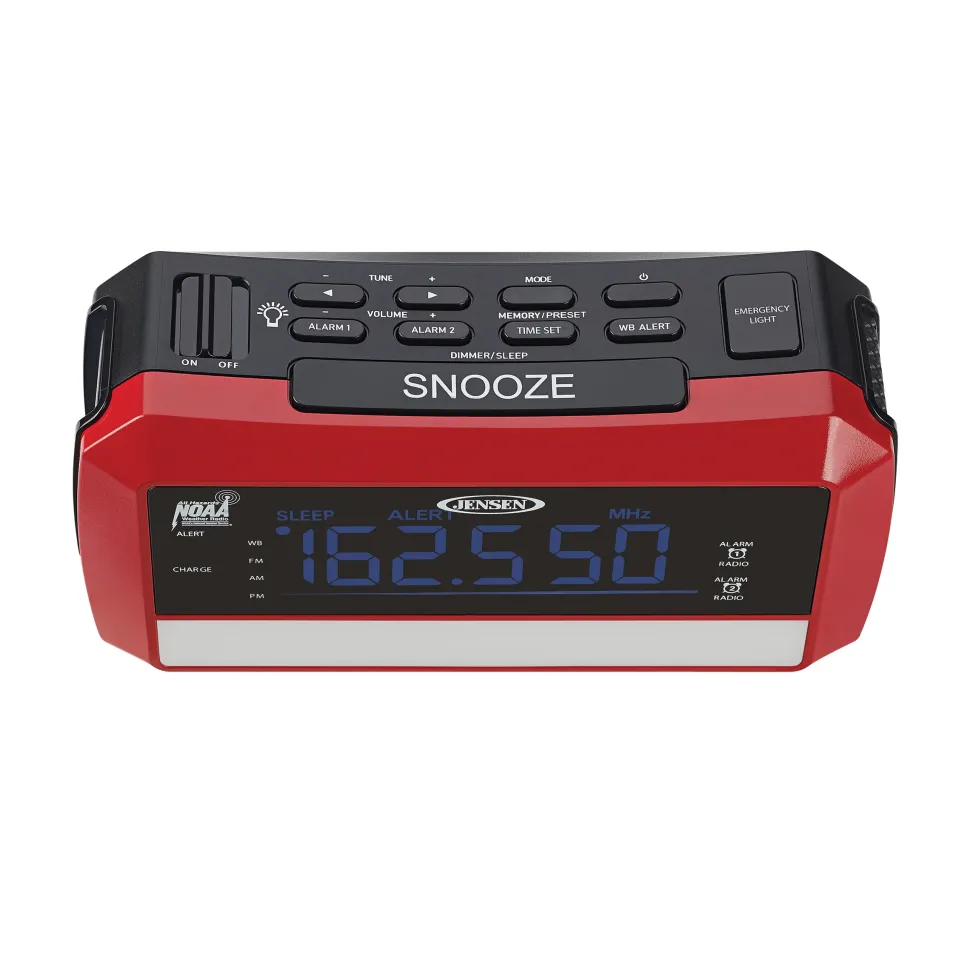 The JENSEN® JEP-775 is an AM/FM weather band dual alarm clock radio with weather alert that also lights your way when the power goes out. This compact and user-friendly radio receives instant 24-hour weather, marine forecasts, and weather alert information by NOAA on all seven (7) weather band frequencies. When NOAA sends out an emergency broadcast, the alarm sounds and an alert indicator turns on to let you know that an emergency broadcast was received.