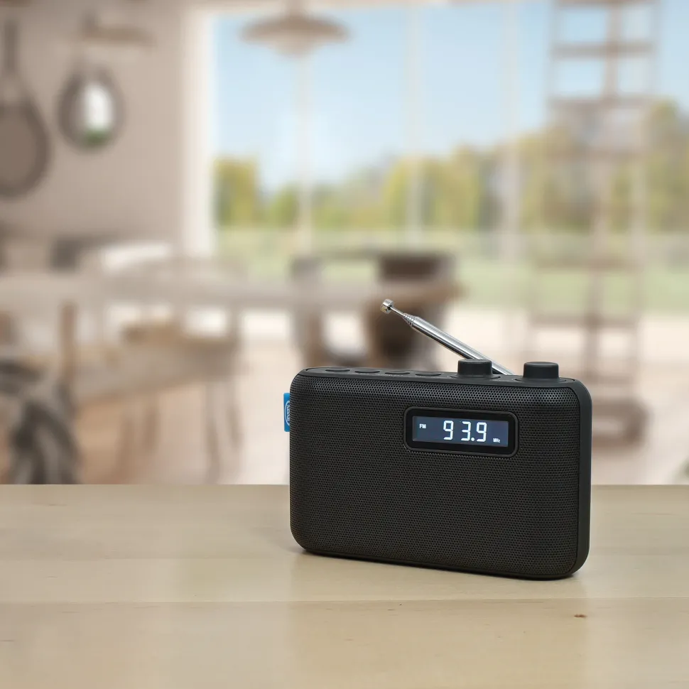 The JENSEN® SR-50 portable AM/FM digital radio can go anywhere you go. The radio features a rubberized finish, digital PLL tuning with 10AM+10FM presets and backlit LCD display. It’s also a dual alarm clock with snooze function and wake to radio or alarm. Never miss a favorite sports team game, listen to your favorite radio station or catch up on the latest news. The unit operates on 4 x “AA” batteries (not included).