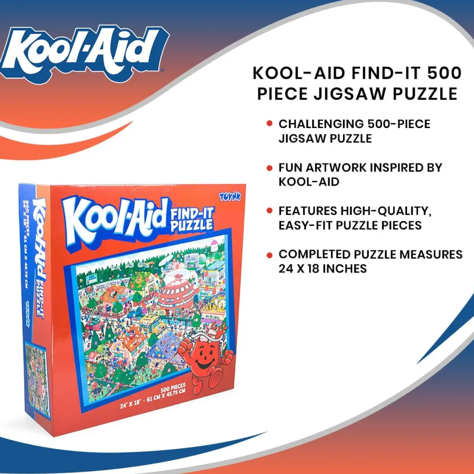 Smash through puzzle-filled walls with this officially licensed Kool-Aid Find-It Jigsaw Puzzle.
