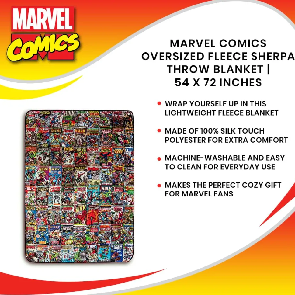 This cozy throw blanket features 72 different classic Marvel comic book covers including: