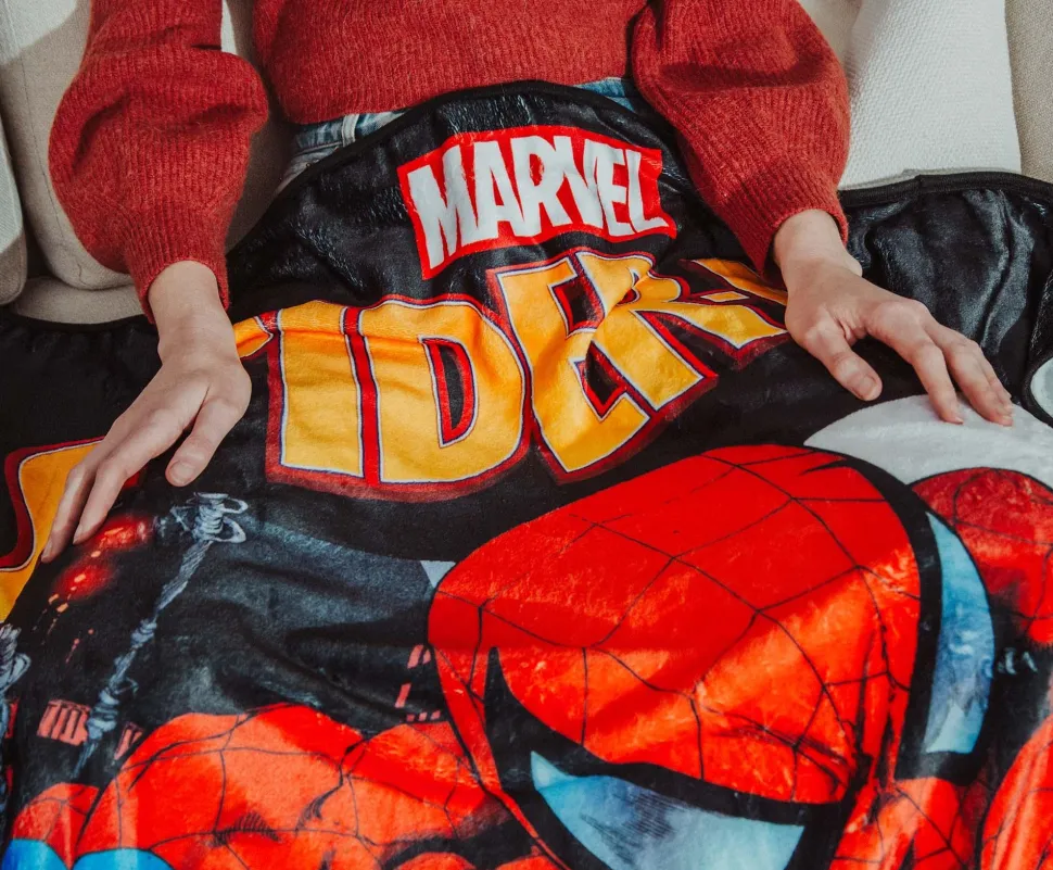 Fight off crime and cold chills by bringing some super snuggles to your life with this exclusive throw blanket inspired by the pages of Marvel Comics.