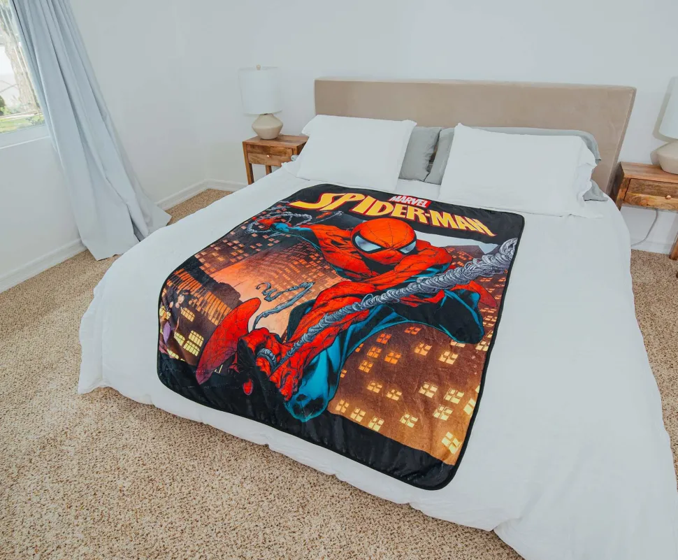Are the evils of discomfort bringing you down? The heroic Spider-Man is here to save your day with this comfy throw cover, featuring the masked hero springing into action.