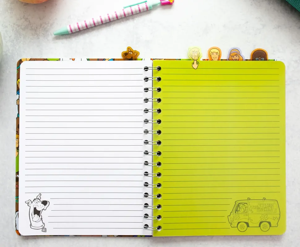 Keep track of who did what, when, and where with this 5-subject notebook. Easy to flip through and write down your thoughts, this lined journal features five color-coded divider tabs. All the members of Mystery Inc. are represented in this journal, including Scooby, Shaggy, Daphne, Fred, and Velma. Whether you’re leading the team or are more interested in a Scooby Snack, there’s a unique index tab for you to chronicle all your spooktacular cases.