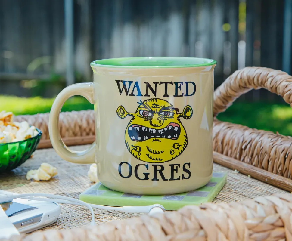 Take a whimsical journey to Far Far Away with this exclusive camper mug featuring the unforgettable ogre Shrek.