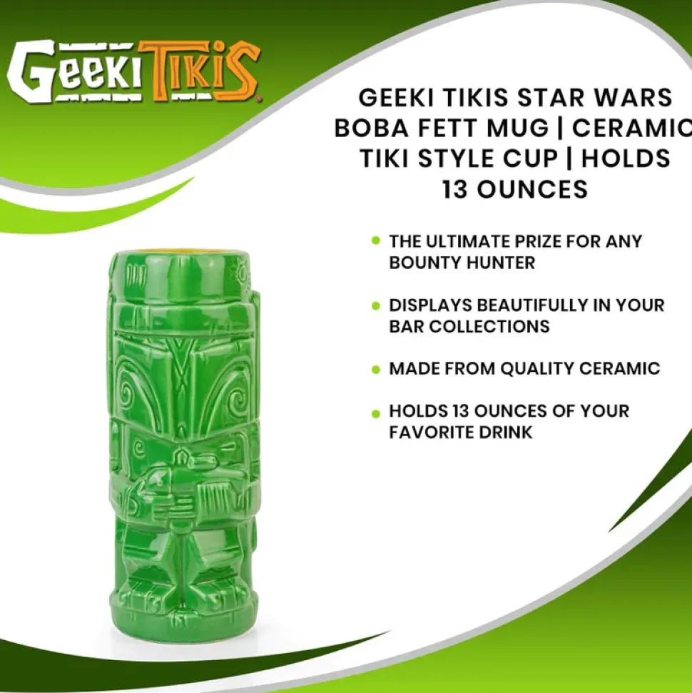 Fresh off his latest contract from Jabba the Hutt, the elite bounty hunter Boba Fett eagerly awaits his next bounty. With a deadly blaster, his own spaceship, and a rocket-firing jetpack, Boba Fett is easily one of the most feared Bounty Hunters in the Galaxy. Now Boba Fett is tasked with a new assignment, defeating your thirst! In the form of this exciting Geeki Tikis mug, Boba Fett can now hold up to 13 ounces of your favorite beverage for a stylish flair to your passion for drinking! This Mandalorian armor-wearing mercenary is ready to keep you company at the bar!