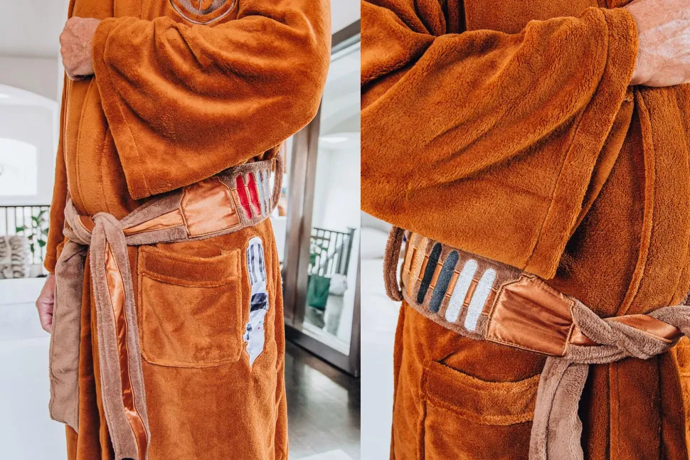 Embody the Light Side of the Force with this Star Wars Jedi Master Adult Bathrobe. Whether you are defeating the evil Galactic Empire or sitting down to sip your morning coffee, this luxurious plush robe will keep you feeling comfortable. Fashioned after a Jedi Master’s signature outfit, this bathrobe is designed to look like the traditional robes of a Jedi Knight. Soft and warm, this fleece robe features detailed embroidered designs, including the Jedi Order insignia.