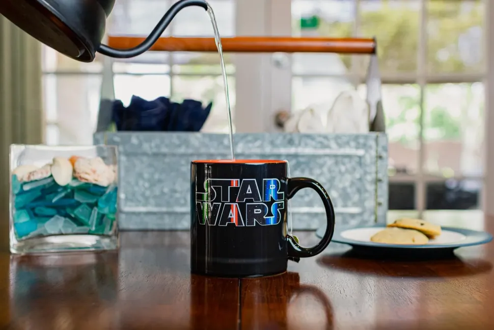 Just as iconic as the logo itself, where would Star Wars be without lightsabers! This officially licensed Star Wars treasure captures the essence of the epic series and depicts in on the face of this Star Wars heat changing mug! This Star Wars lightsaber mug will start off as displaying just the franchise logo and the Battle of the Death Star in the background. When you add in your coffee or other hot drinks, this lightsaber mug comes to life! Watch as each lightsaber appears around the Star Wars heat changing mug! Perfect for any Star Wars fan, this lightsaber coffee mug is sure to bring a smile to any aspiring Jedi’s face.