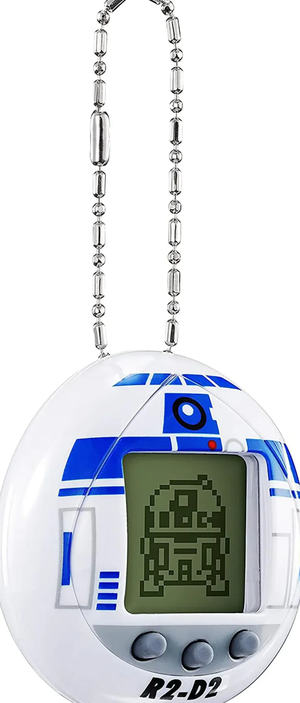 - INCLUDES: Star Wars R2-D2 Tamagotchi with a classic white R2-D2 shell on a chain to take with you everywhere! Batteries (2xLR44) included.