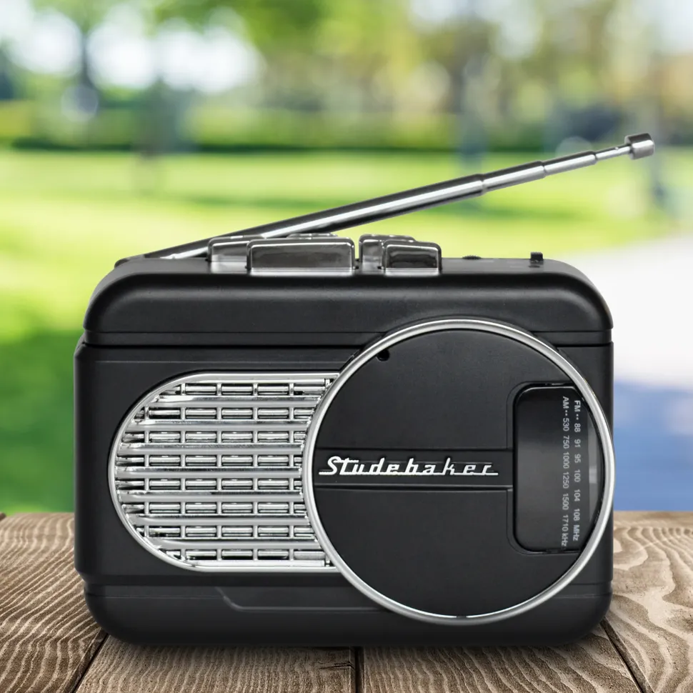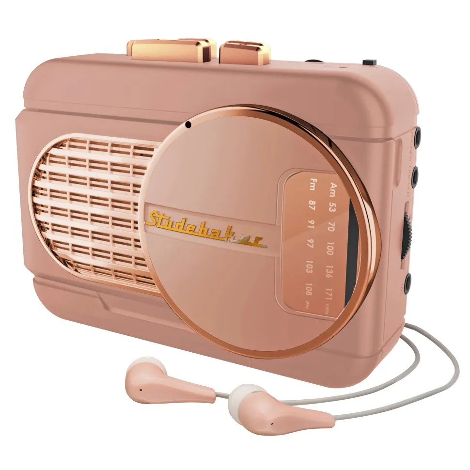 Take a stroll down memory lane and listen to those old mixtapes and timeless classics with this retro-style personal stereo cassette player with built-in speaker and AM/FM stereo radio. This lightweight, colorful stereo cassette player comes complete with color-coordinated stereo earbuds and a detachable belt clip. It also features auto-stop, rewind function and cassette recording from the radio, built-in mic and mic jack. Requires 2 “AA” batteries (included) or AC power adapter (not included).
