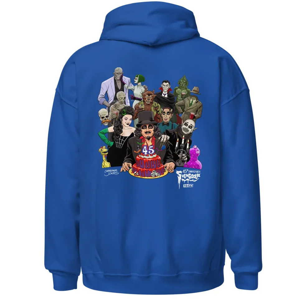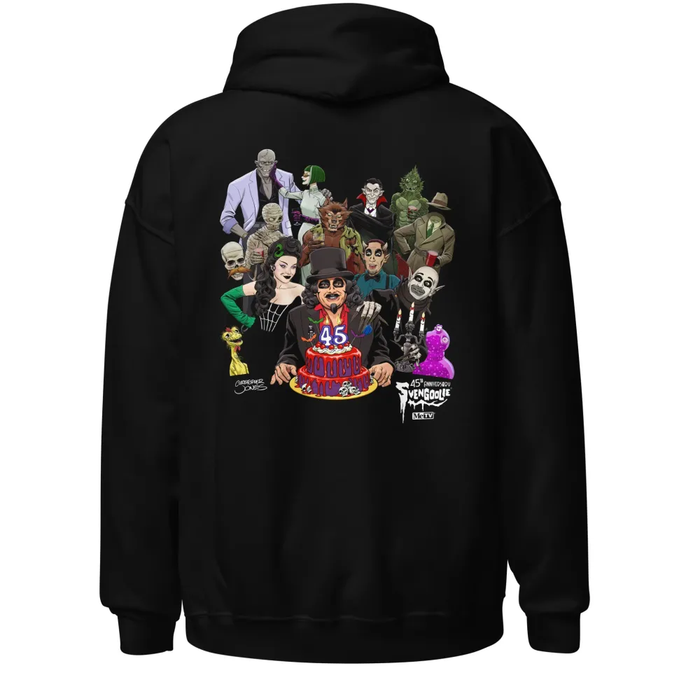 Celebrate 45 years of Svengoolie by joining this party! This monster bash is honoring our favorite horror host. Since 1979, Svengoolie and monsters have gone together like cake and a party! Acclaimed comic artist Christopher Jones created this original piece to kick off a year of celebrating Svengoolie. Shop our and join us on Saturdays on MeTV.