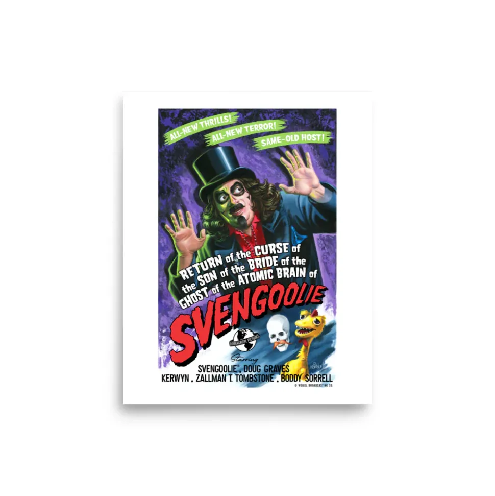 SPECIAL: Order all 5 prints in one order and receive 20% off the prints!The Svengoolie Artist Collection 2022 is now available as ato add to your own gallery at home. The prints are available framed to make gift-giving even easier!