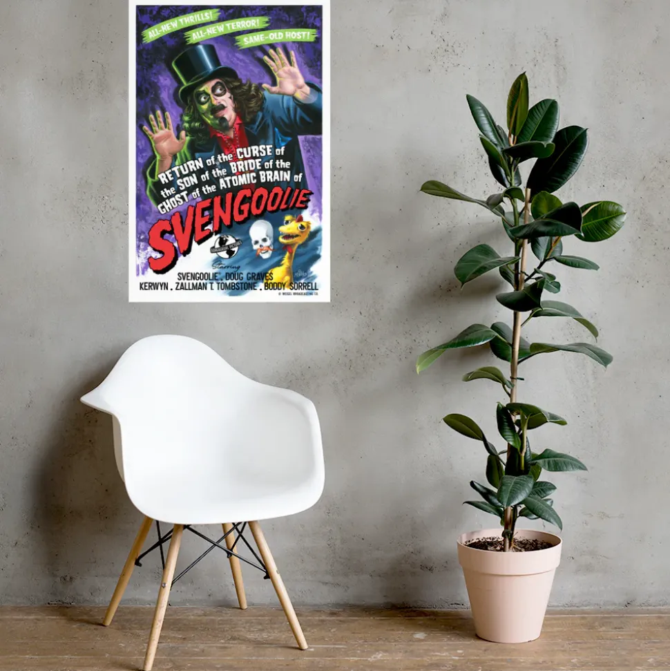 MeTV’s resident horror hostSvengoolie® is the main feature in this monster-themed movie poster. “The Horror of Svengoolie Poster” design premieresas our third releasein the! This collectible design was created by renowned artist.