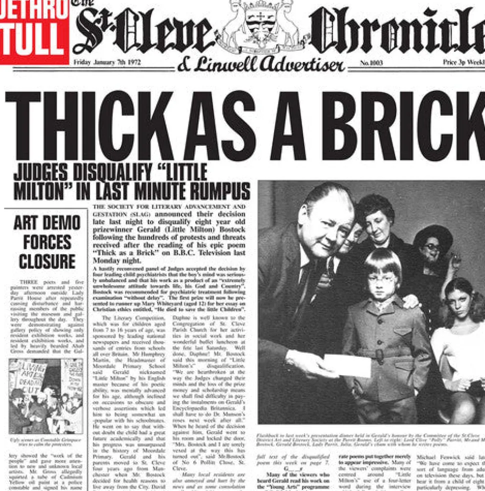 Limited 180gm audiophile vinyl LP repressing of this classic rock album. Thick As A Brick was the fifth studio album by Jethro Tull, released in 1972. The album is notable for only including one song, which spans the entire album. Thick As A Brick was deliberately crafted in the style of a concept album (and as a “bombastic” and “over the top” parody). The original packaging, designed like a newspaper, claims the album to be a musical adaptation of an epic poem by a (fictional) eight-year-old genius, though the lyrics were actually written by the band’s frontman, Ian Anderson. The album was a commercial success and topped the US charts.