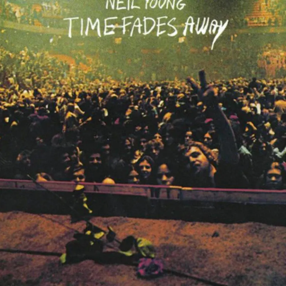 Vinyl LP pressing. Time Fades Away is a 1973 live album by Neil Young, consisting of previously unreleased material. It was Young’s first live album, and was recorded with The Stray Gators on the tour following 1972’s highly successful Harvest and has not been reissued on CD due to Young’s dissatisfaction with that particular series of concerts. Time Fades Away received much critical praise. Though “Love In Mind” dates from a 1971 solo tour (on the January 30 date of the tour, from which “The Needle and the Damage Done” on Harvest was sourced), all other songs on the album were from recordings made during a 62-date tour in early 1973 that featured an acoustic set with Young followed by an electric set with backing band the Stray Gators.
