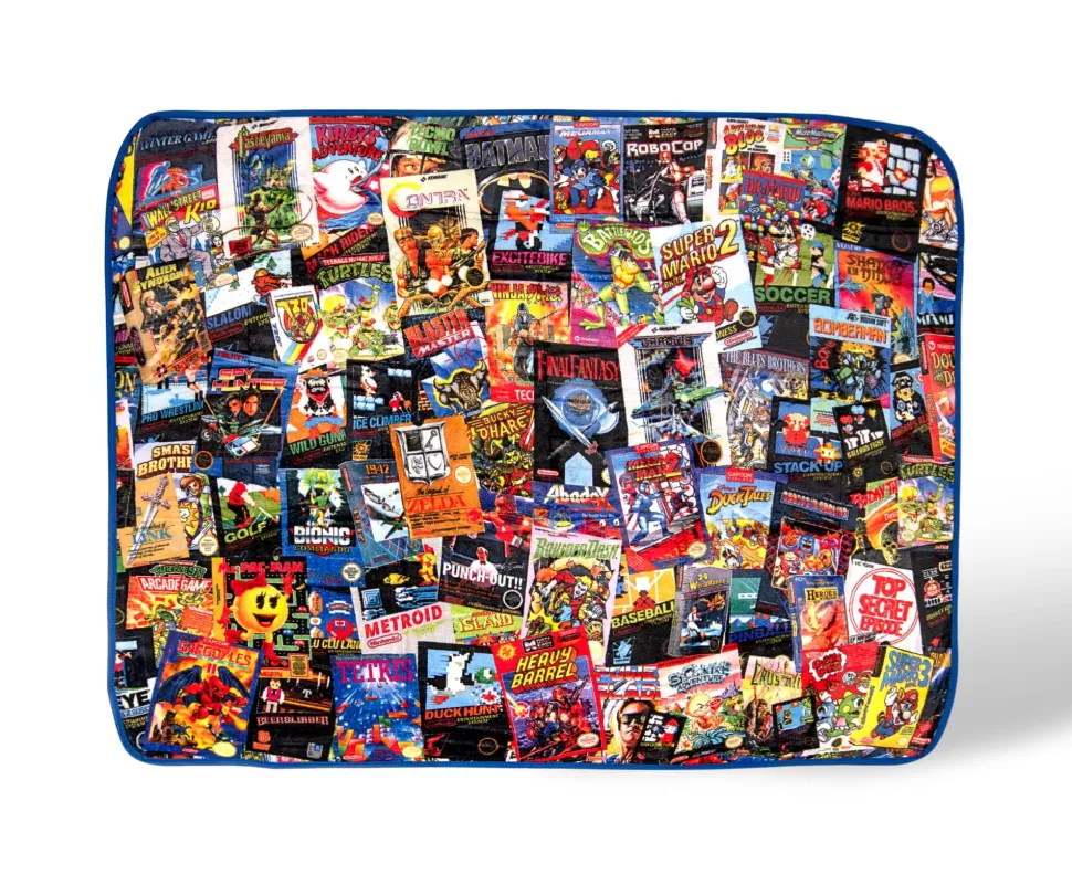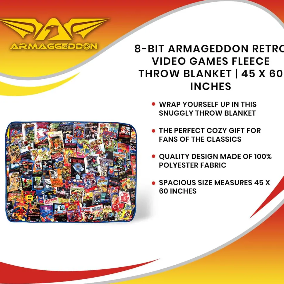 Nothing beats a classic. Kick it back old school with this exclusive 8-Bit Armageddon Throw Blanket. This cozy home essential is hitting all the nostalgic vibes, with a retro collage inspired by popular video game titles. Enjoy references to a variety of generational classics, including Kirby’s Adventure, Tetris, Mega Man, and other fan faves.