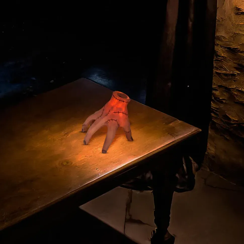 Snap away the darkness with this exclusive figural mood light featuring Thing from the cult hit Wednesday.