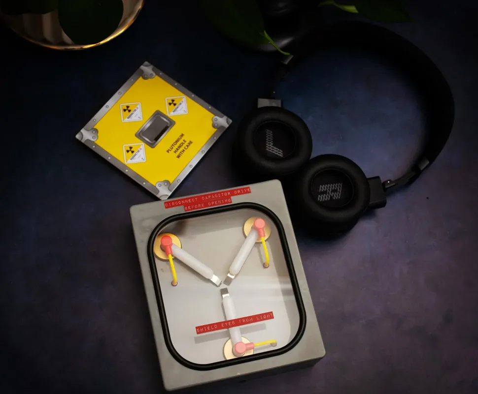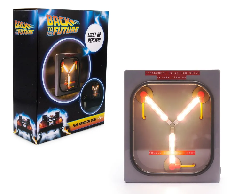 It’s a Back to the Future Flux Capacitor Mood Light! This 6-inch cube modeled after the iconic Flux Capacitor adds a bit of light and nostalgia to any dark corner. The 15-minute auto-shutoff mode is especially useful if you’re using it in a bedroom as a night light.