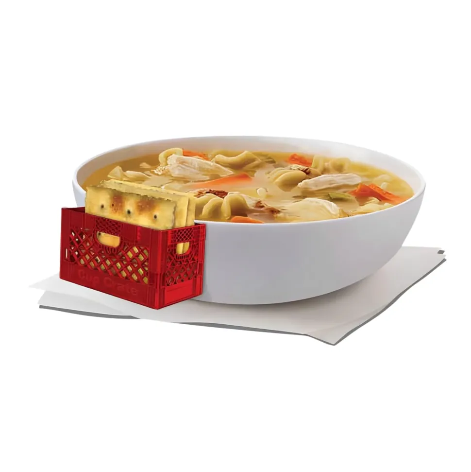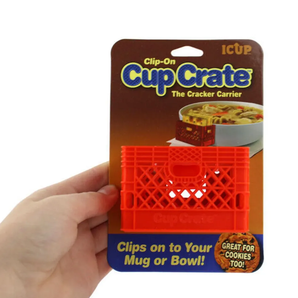 Have the perfect place to keep your crackers and cookies with this novelty cup crate that clips directly onto the bowl or mug. Whether you love chips with your chili or want to keep your hands free while enjoying cookies and milk, this fun clip provides an extra hand in a memorable way.