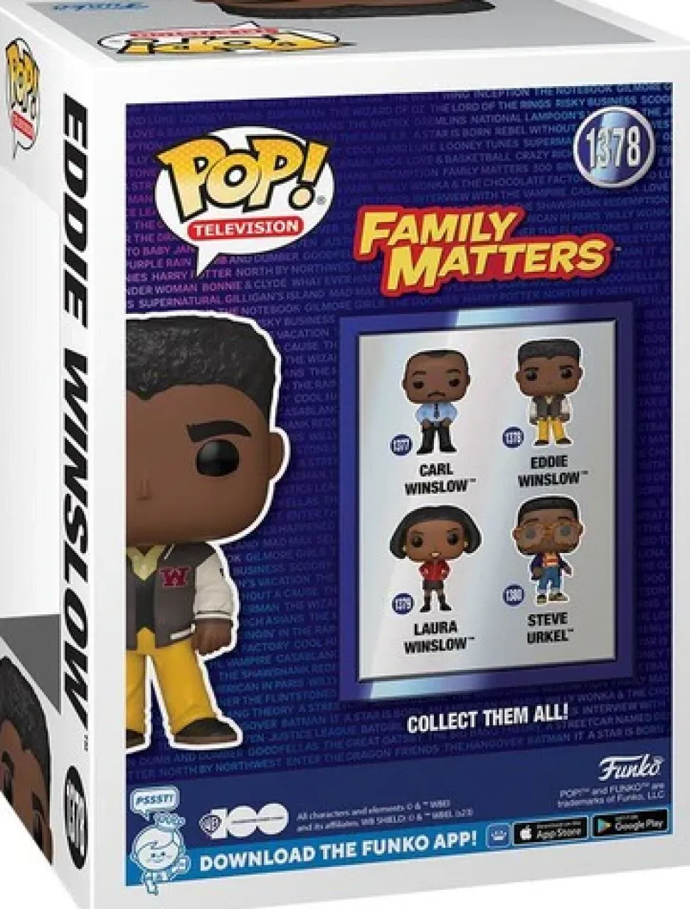 Bring the household together with Pop! Eddie Winslow! Celebrate the Warner Bros. 100th Anniversary by reuniting him with the rest of his family in your Family Matters collection. Vinyl figure is approximately 4-inches tall.