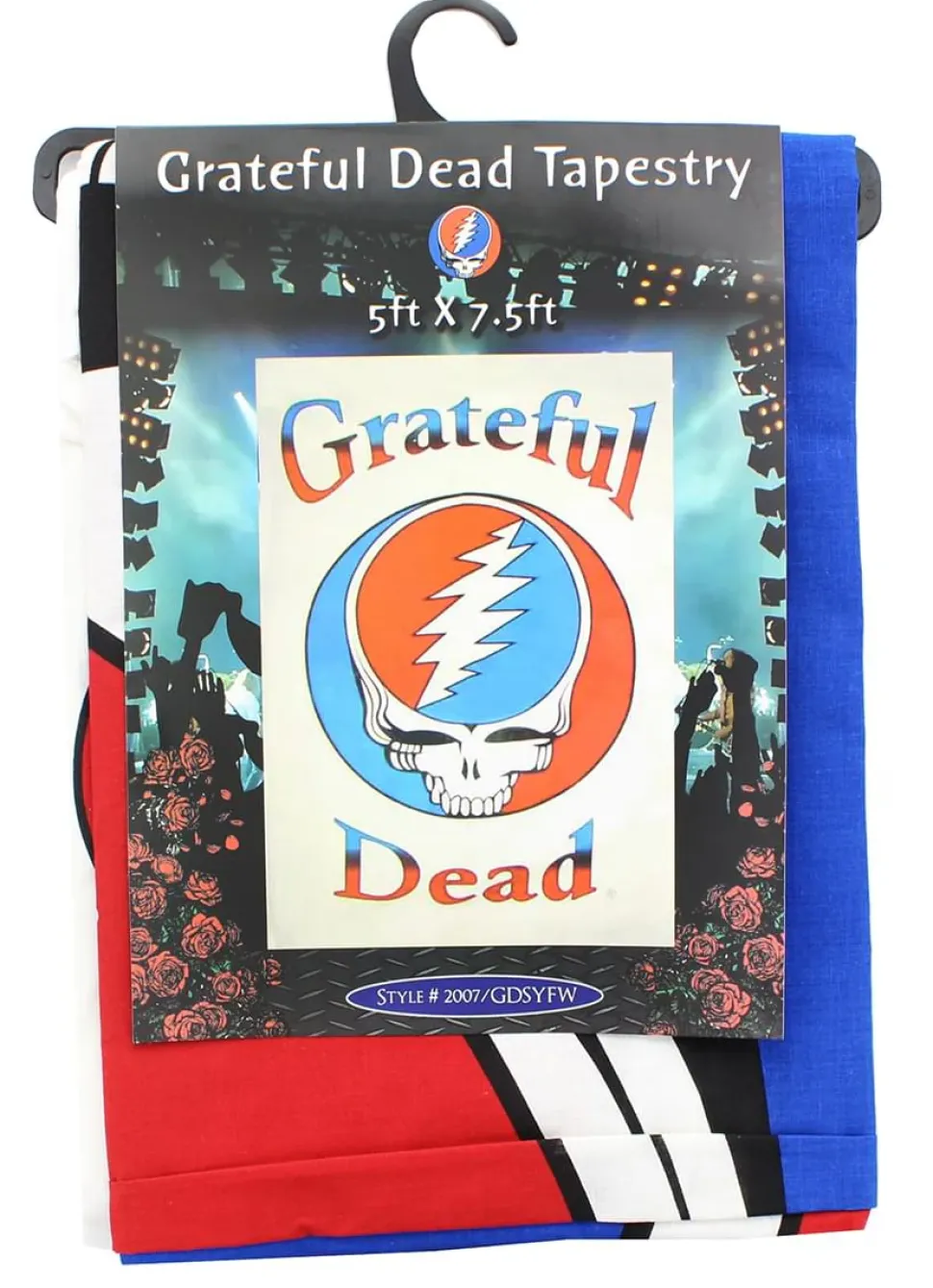 Show off your love of the Grateful Dead with this officially licensed wall tapestry by Just Funky! Made of 100% cotton, this large 60 x 90-inch white tapestry features a blue and red image of the Steal Your Face skull logo. Sure to make a great gift for your favorite Grateful Dead fan!