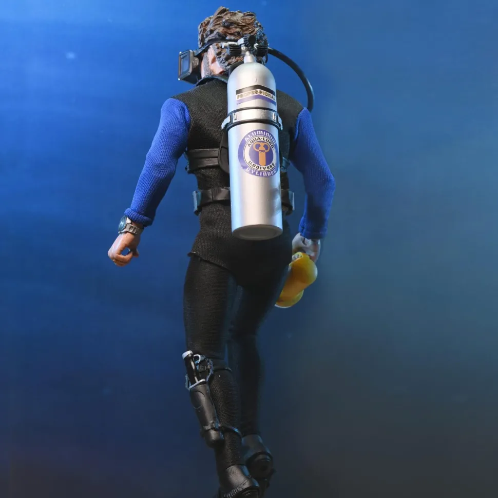 Jaws is considered one of the greatest achievements in film, paving the way for what would become the summer blockbuster. NECA is excited to announce a new 8″ clothed figure featuring the licensed likeness of Richard Dreyfuss as Matt Hooper from the 1975 classic. Based on the shark cage scenes, this action figure of the young oceanographer stands 8″ tall and is equipped with screen-accurate accessories (flippers, spear, underwater light, knife, and oxygen tank) as well as swappable heads. Window box packaging.