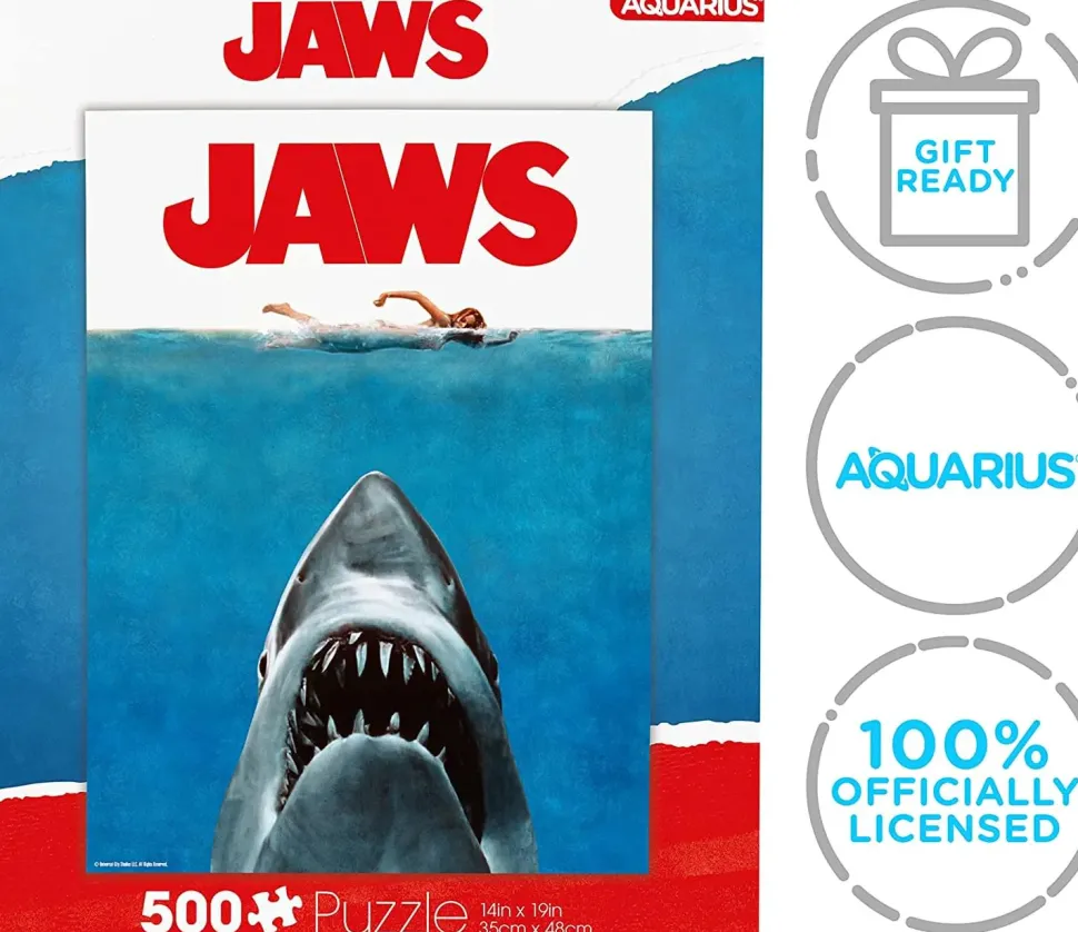 Have fun building this officially licensed JAWS Jigsaw Puzzle featuring crisp, high-res imagery, crafted from the highest resolution images! Puzzles are a fun challenge that make for an amazing display piece once completed. Puzzles are a fun activity to do alone or in a group, and make a great gift for all ages at birthdays and holidays!