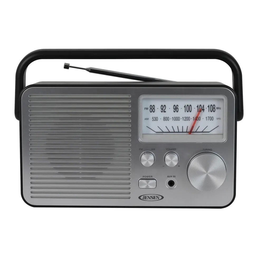 Never miss your favorite game, listening to your favorite radio station or catch up on the latest news with the JENSEN® MR-750 portable AM/FM radio. The radio can go anywhere you go and is available in three stylish colors with a large analog tuning dial that makes setting your favorite station a breeze. You can also play music from an MP3 or other digital media player using the front mounted auxiliary input jack. The MR-750 also includes a built-in speaker, folding handle and FM telescopic antenna. The unit operates on 120V AC power or using four (4) x “C” batteries (Not included).