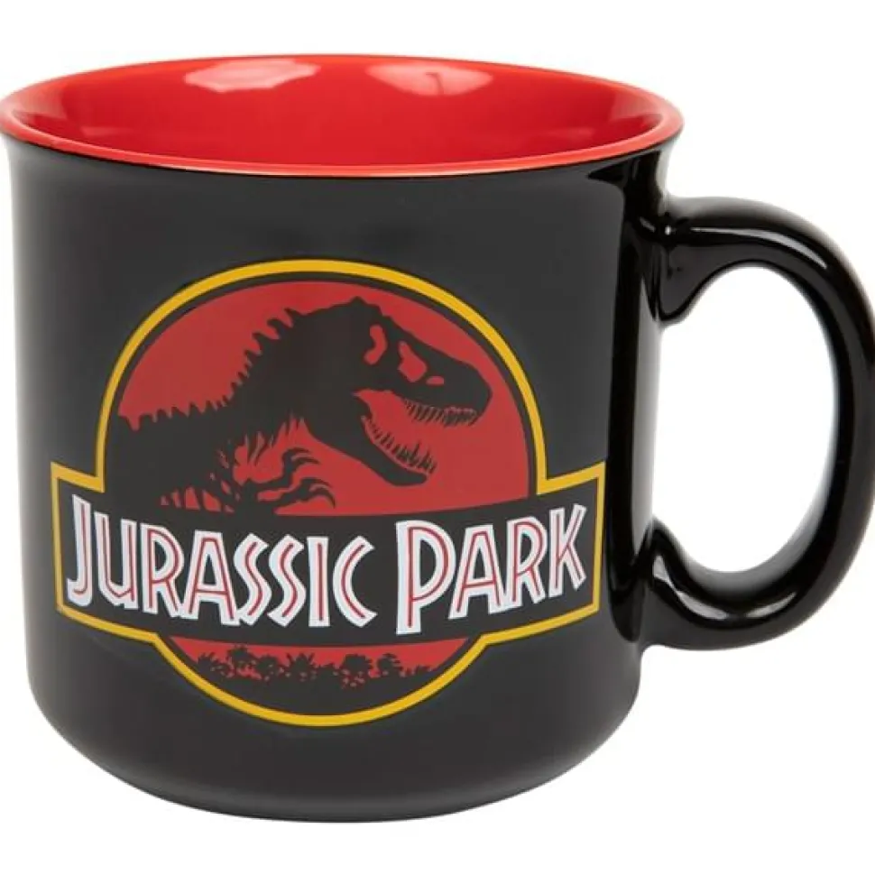 Jurassic Park Classic Logo Black Ceramic Camper Mug | Holds 20 Ounces
