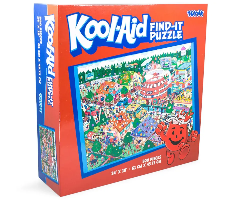 Smash through puzzle-filled walls with this officially licensed Kool-Aid Find-It Jigsaw Puzzle.