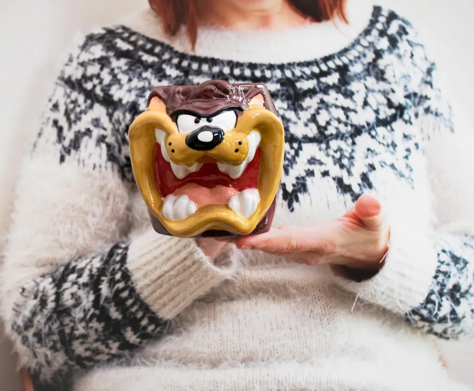 This rambunctious three-dimensional sculpted mug displays a recreation of the terrifyingly fun Taz the Tasmanian Devil.