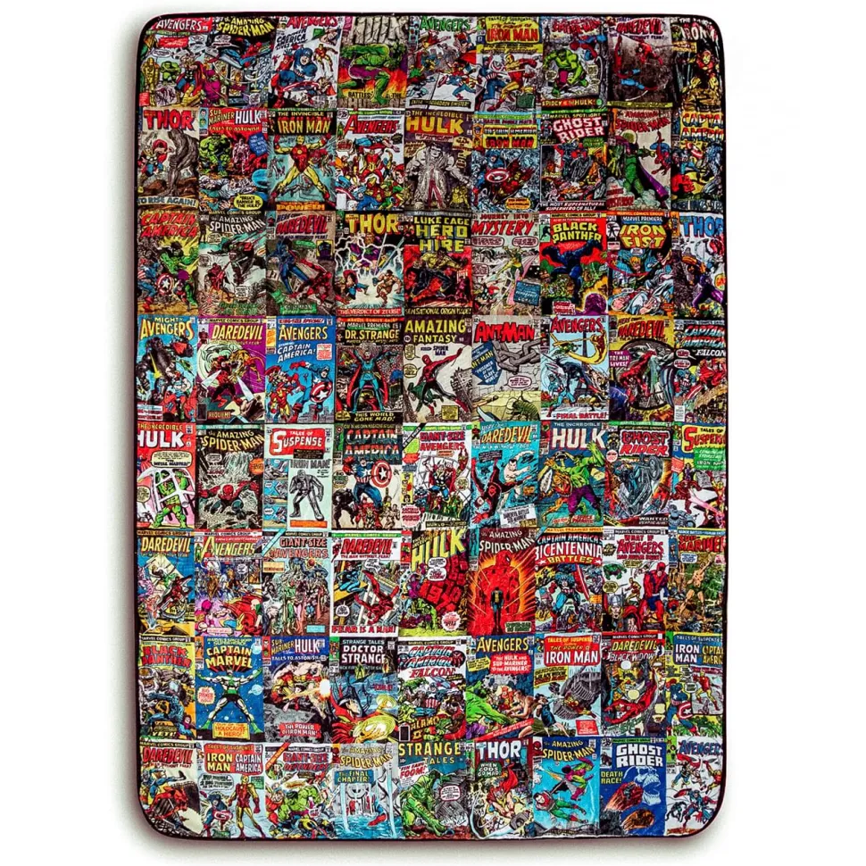 This cozy throw blanket features 72 different classic Marvel comic book covers including: