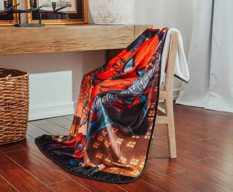 Are the evils of discomfort bringing you down? The heroic Spider-Man is here to save your day with this comfy throw cover, featuring the masked hero springing into action.