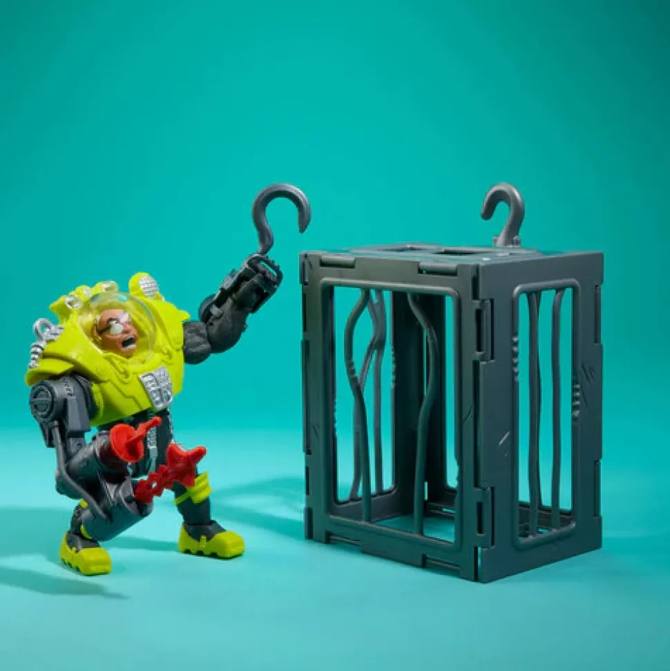 This figure of the gene-juggling madman has modern articulation, a spring-fired speargun with projectiles, transformation action, and a modular shark cage. At about 6 inches tall, Dr. Piranoid makes a great collectible for everyone who grew up watching Street Sharks, as well as brand new fans seeing these characters for the first time.