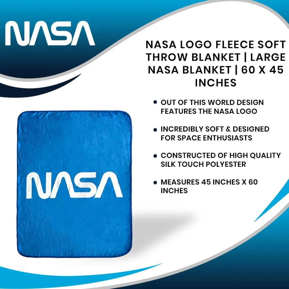 NASA and space enthusiasts can now celebrate their love for space exploration and discovery by taking home this decorative NASA logo blanket! These soft fleece throw blankets are made to take your fandom to the next level! Not only are they perfect for a quiet night of exploring the cosmos, but these cozy throw blankets are perfect for adding a pop of style anywhere around the house! Blankets and throws are easy to pack away and even easier to grab whenever you need throw blankets for bed or for cuddling up on the couch! Enjoy your favorite movies, books, games, science articles, and more with the added comfort of this soft throw blanket wrapped around you!