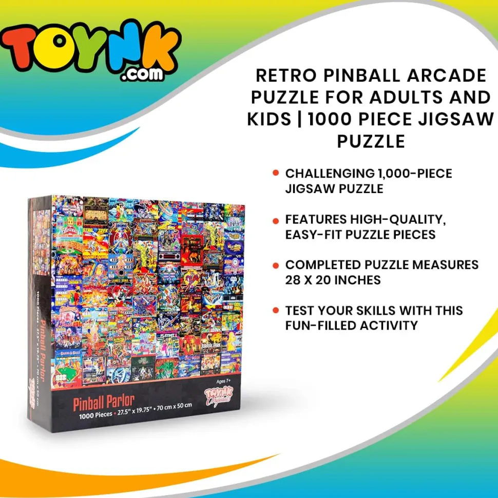 After you successfully assemble all of the pieces, show off your accomplishment by framing the completed 1000-piece jigsaw puzzle. This interactive puzzle toy will stimulate your mind, allowing you to decompress while enjoying hours of entertainment. Host a family game night or make it a personal challenge to complete this Retro Pinball Arcade 1000-Piece Jigsaw Puzzle solo.