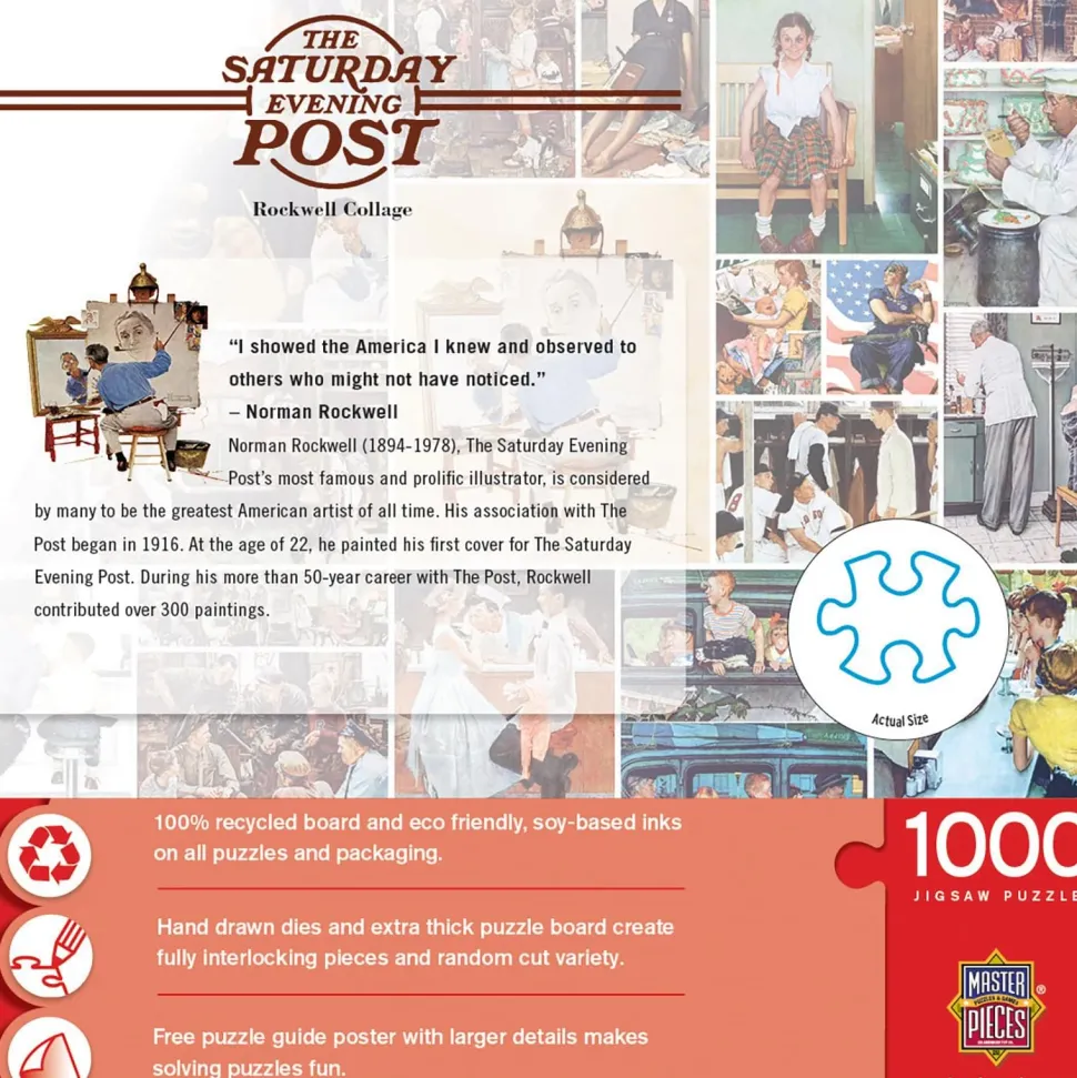 Put your skills to the test with this entertaining MasterPieces 1000 piece jigsaw puzzle featuring the art of Norman Rockwell as seen on the cover of the Saturday Evening Post! A fun challenge that makes for an amazing display piece once completed. Puzzles are a fun activity to do alone or in a group, and make a great gift for all ages at birthdays and holidays!