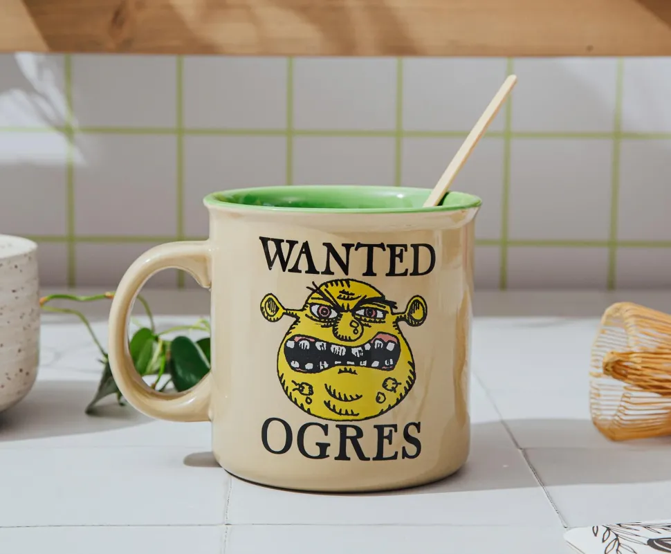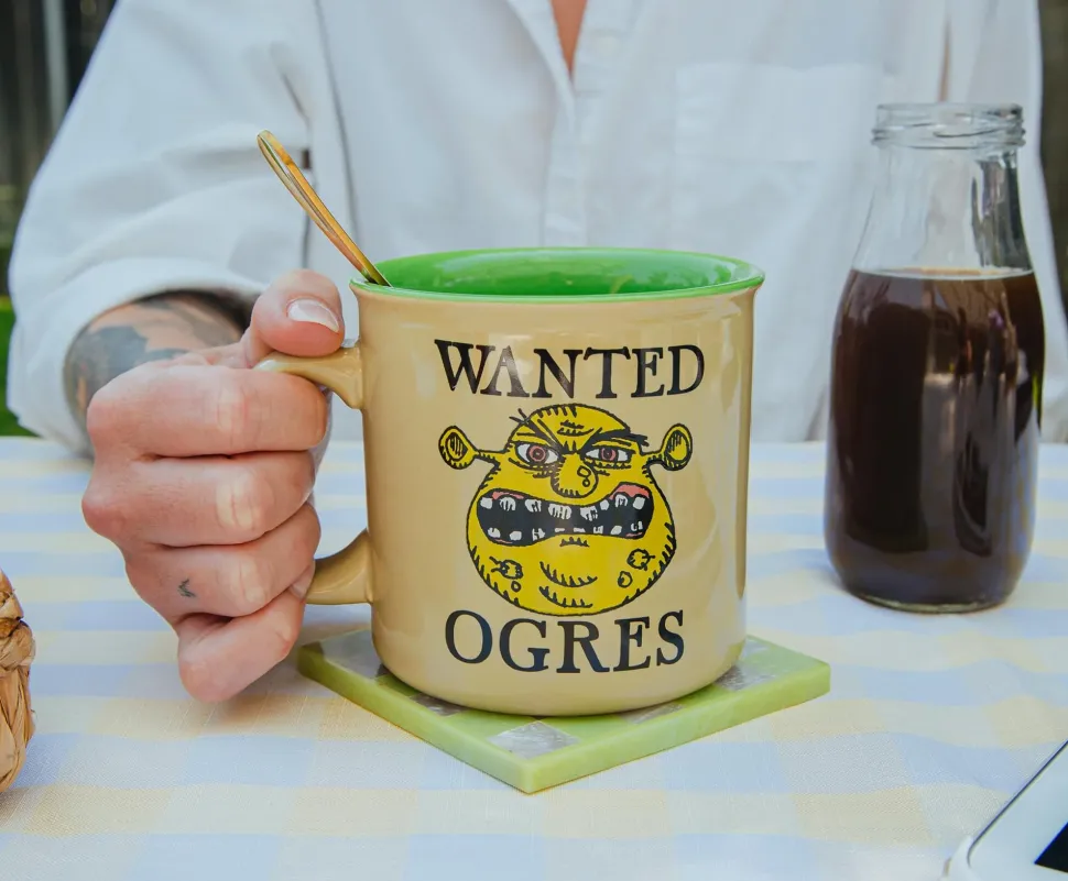 Take a whimsical journey to Far Far Away with this exclusive camper mug featuring the unforgettable ogre Shrek.