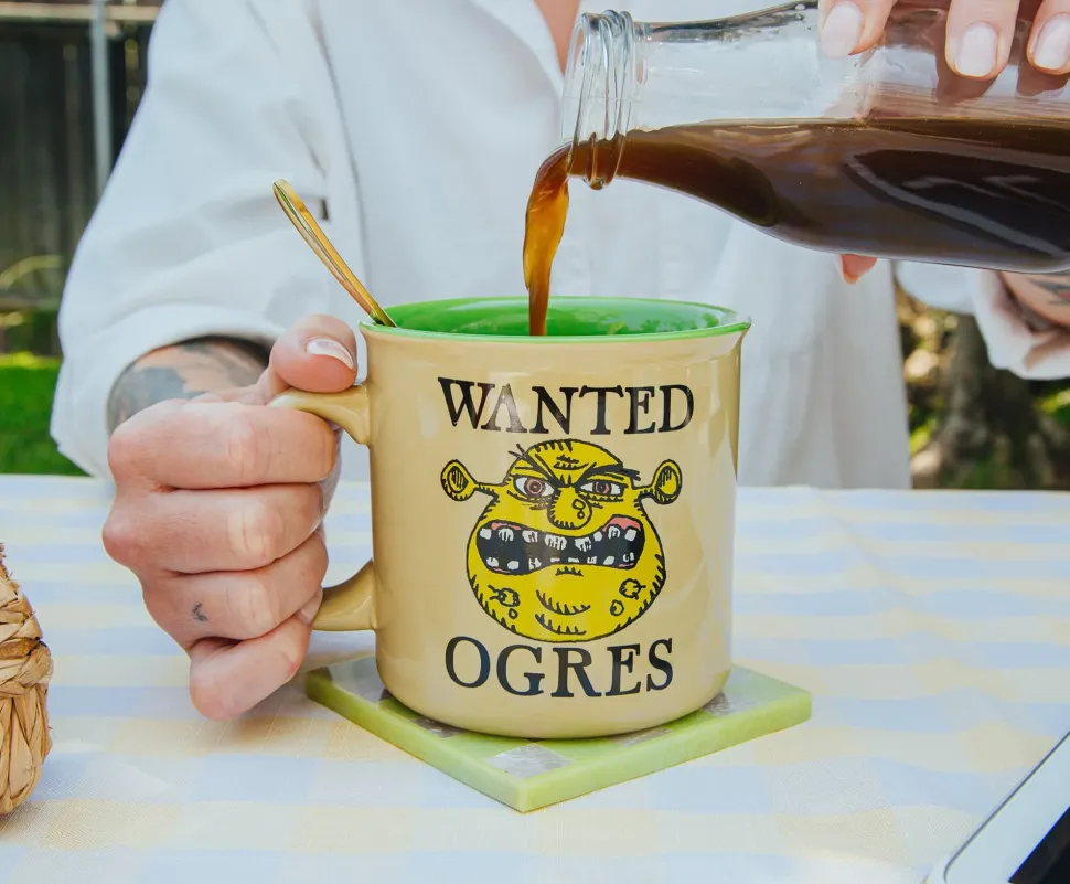 Kick back in your humble home in the swamp with this high-quality BPA-free ceramic mug, made for all your fantastical travels in the enchanted kingdom of Far Far Away. Fill up on all your magical favorites with his large mug to quench your thirst, including a cool cup of swamp water or a refreshing mug of leche.