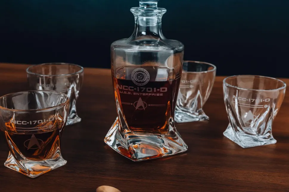 Perfect for entertaining or any casual occasion, whether you’re drinking synthehol or green Aldebaran whiskey — a gift from your old friend, Captain Picard. Ideal for showing off your special release small-batch whiskey in style at your next Star Trek viewing party, holiday gathering, themed birthday celebration, or other special occasions. Raise a glass to your Star Trek fandom! Make this refined whiskey decanter set the future of your home bar or a friend’s drinkware collection.